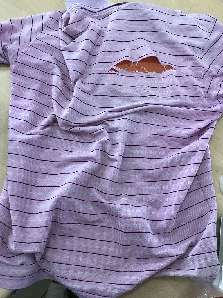 何百回も洗濯を潜り抜けたせいで、もう線維がボロボロ。少し引っ張っただけでドコでも破れます。